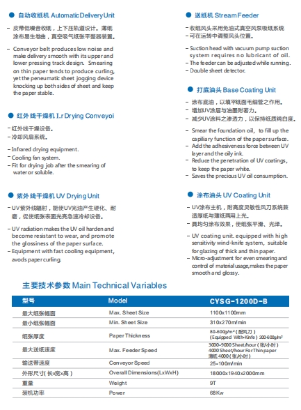 首頁 >> CYSG-1200D-B 全自動UV厚薄紙三輥三機頭全面上光機